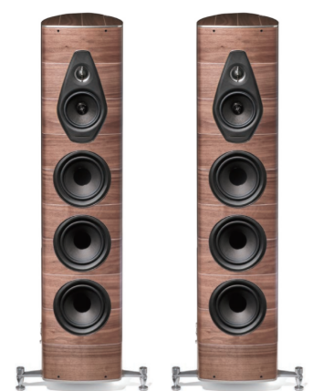 イタリアのソナス・ファベール。その中核をなす「Olympica NOVA V」は、リュート(弦楽器)の形状を模した美しいキャビネットが特徴です。天然木を何層にも重ねた外装は、内部の不要な共振を逃がし、音楽に豊かな「響き」と「温度感」を与えます。